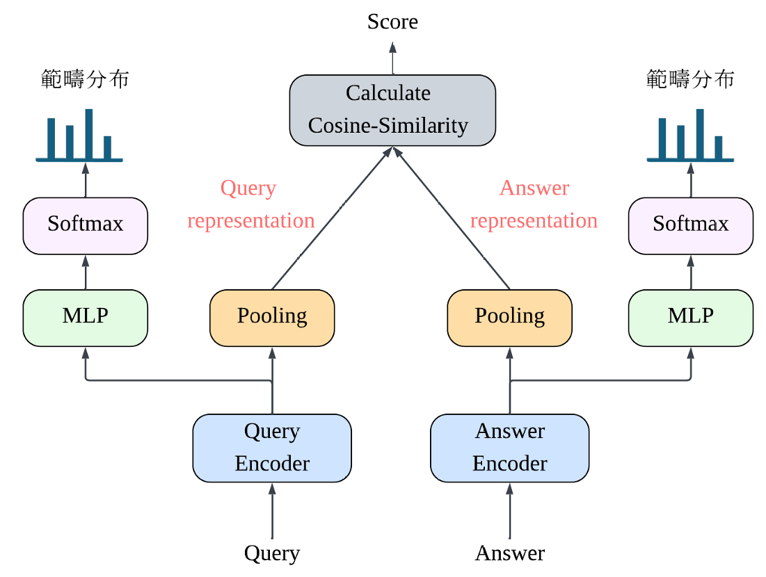 圖 2. 本研究提出之整合語意範疇預測的 Dense Retriever 完整訓練架構